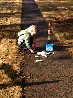 I think my mom found this wee pot at a garage sale last fall for Ella. Tonight, after pulling it out of the dishwasher following some make-believe fun, I thought it would be exciting to serve Ella her dinner in it. It was a hit! Thanks, Nana!